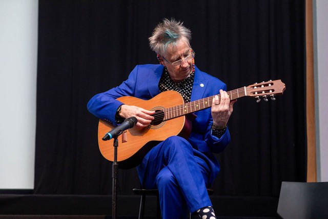 So the truth is, i've taken up guitar again after a 30 year break and am not very good, but Helen and Kieran asked me to play live during the 'In Memorian' section. So I wrote a requiem for strings and french horn which was a conversation between my guitar and a solo violin. This is track 3 'The final frame'